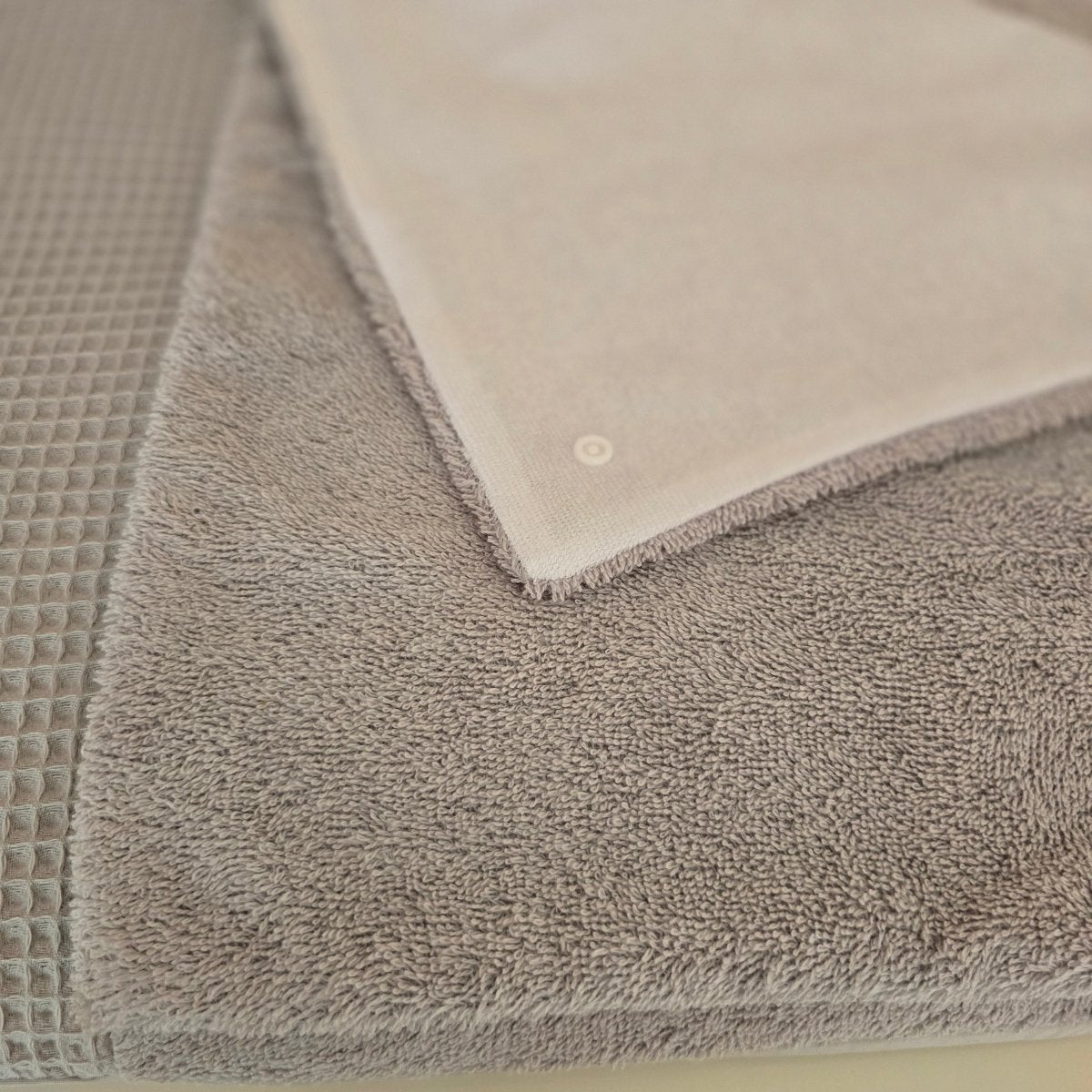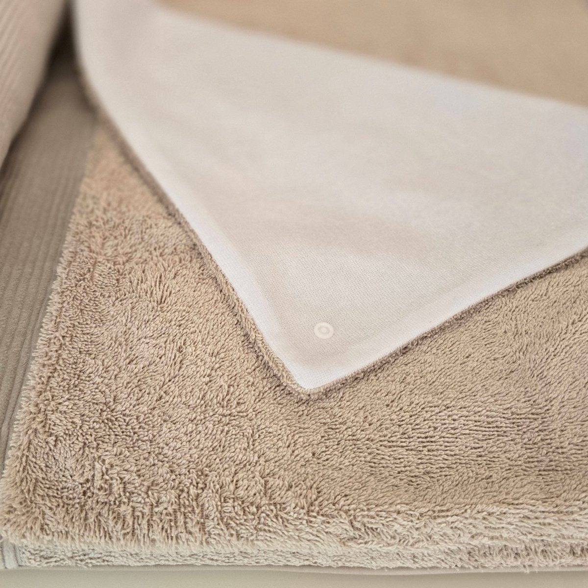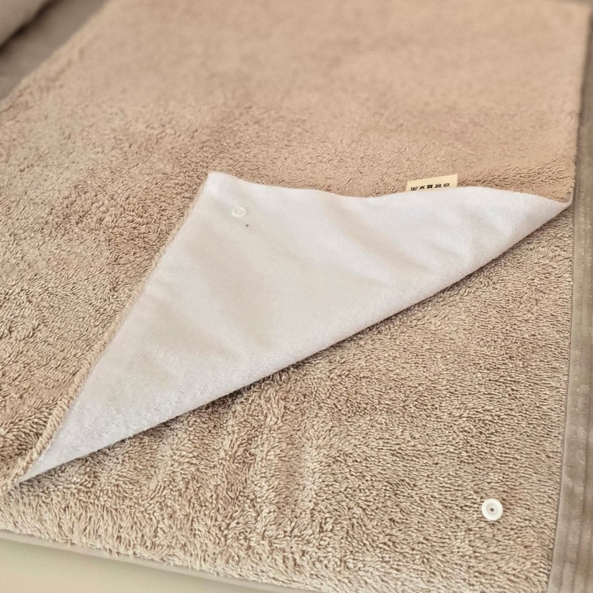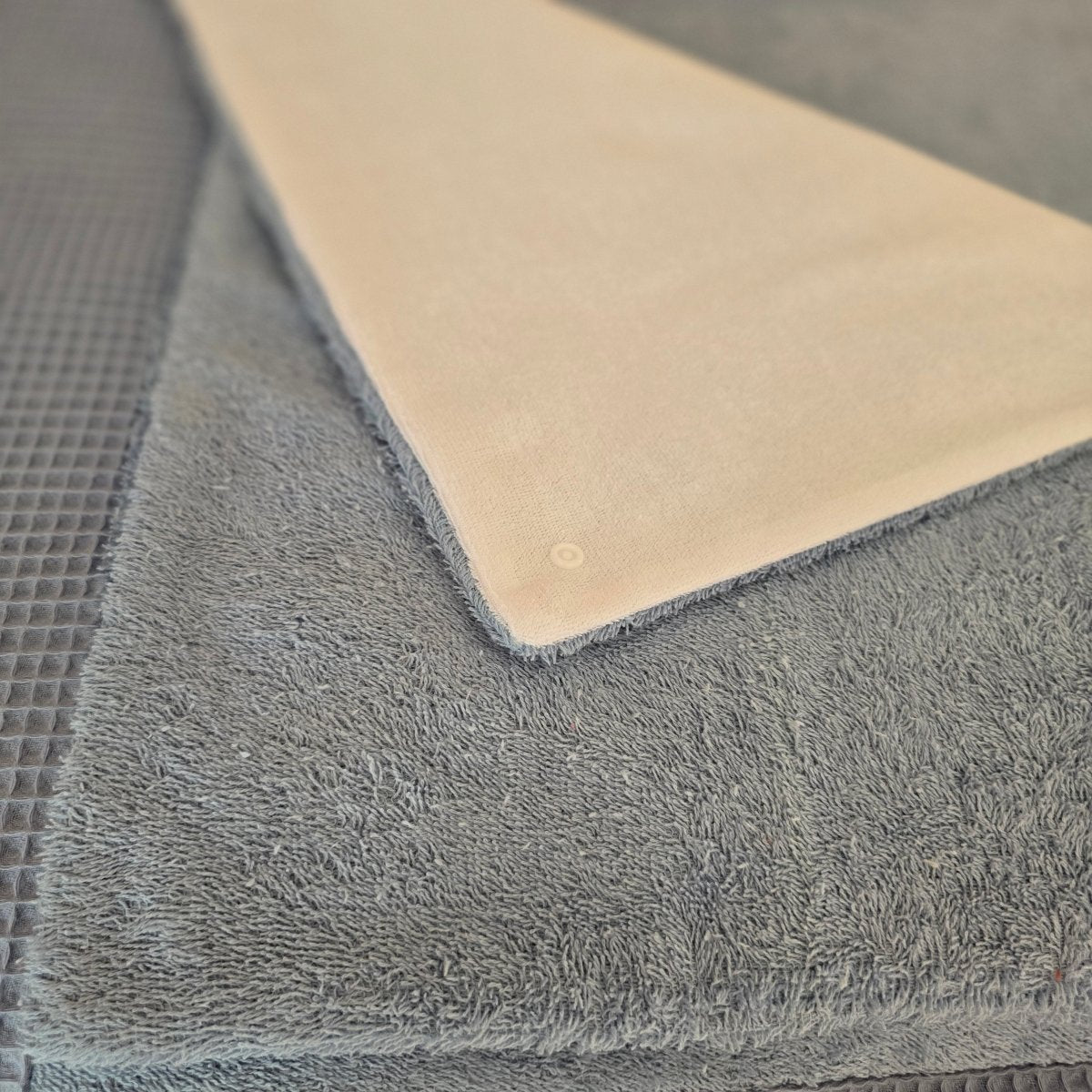 Die abknöpfbare Auflage ist wasserdicht und wird aus Frottee oder wasserfestem Stoff genäht. Die Druckknöpfe werden automatisch an die Wickelunterlage/Bezug angebracht, wenn man die abknöpfbare Auflage dazu bestellt.