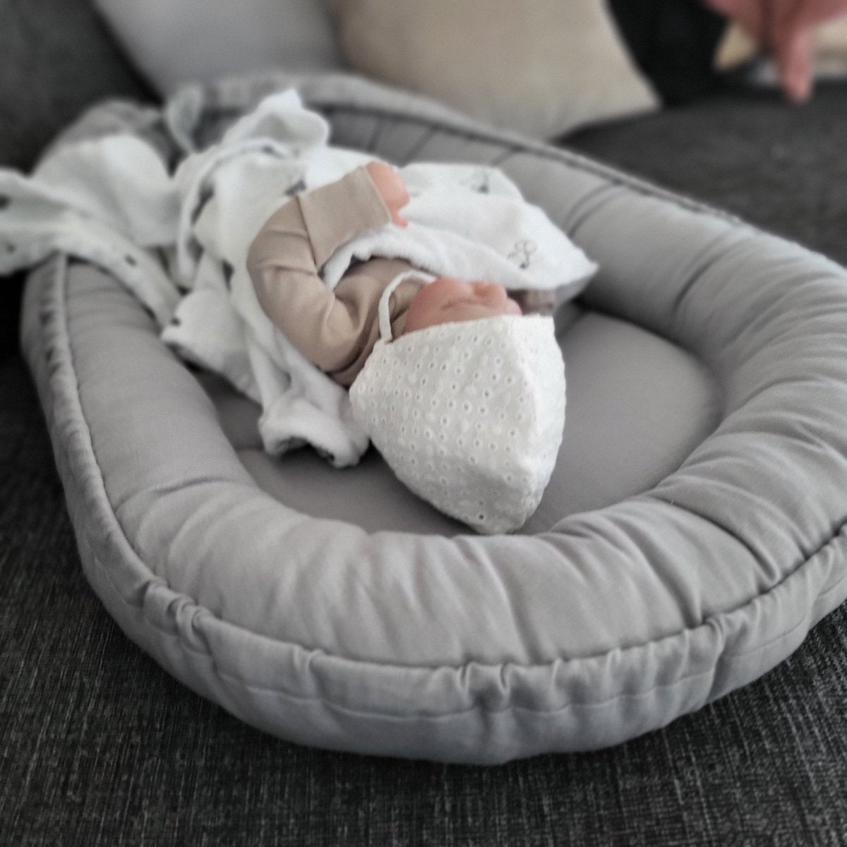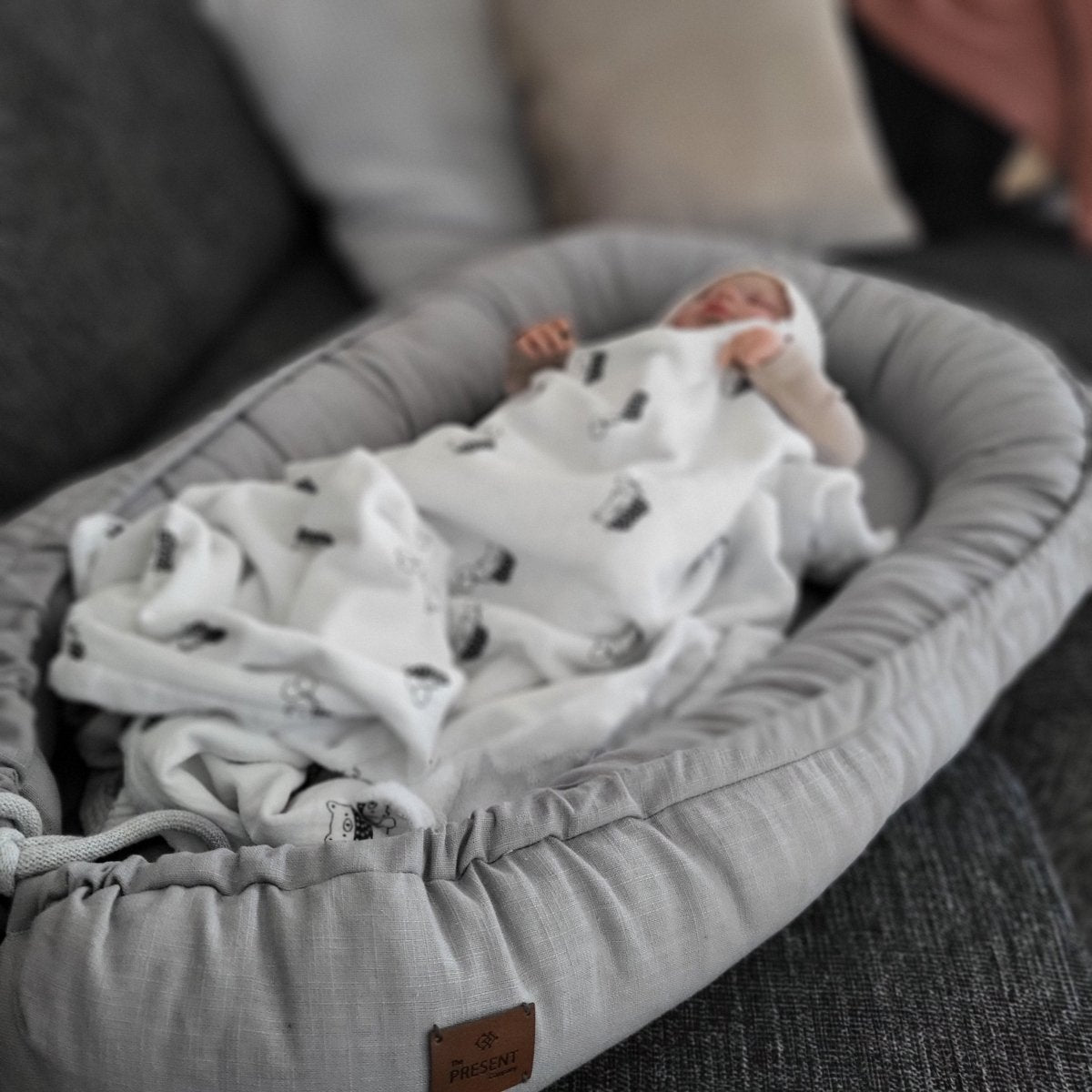 Baby Nestchen Leinen Grau
