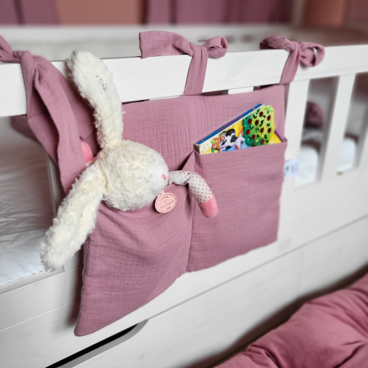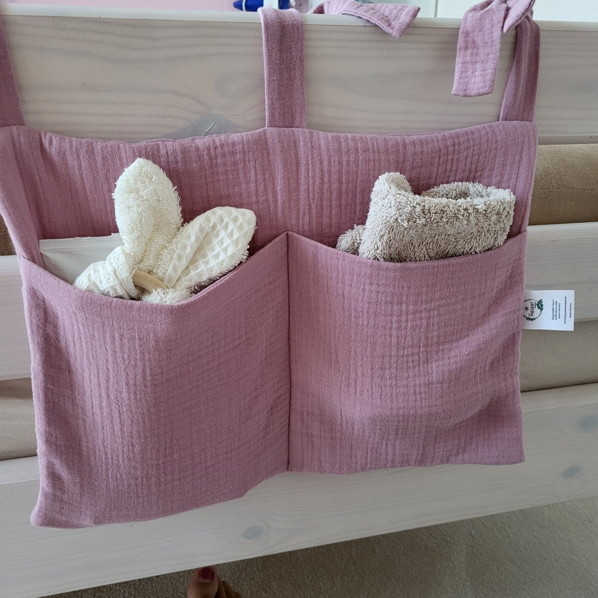 Diese wunderschönen Organizer aus Waffelpikee zum Aufhängen sind ein echter Hingucker. Sie besitzen 2 geräumige Fächer zum Aufbewahren von Spielzeug, Decken, Schnuller und anderen Dingen, die man immer gerne schnell zur Hand haben möchte.