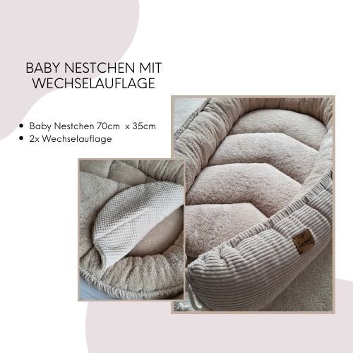 In dem Paket hast du die komplette Wickelauflagenset und Baby Nestchen mit 2x Wechselauflagen.