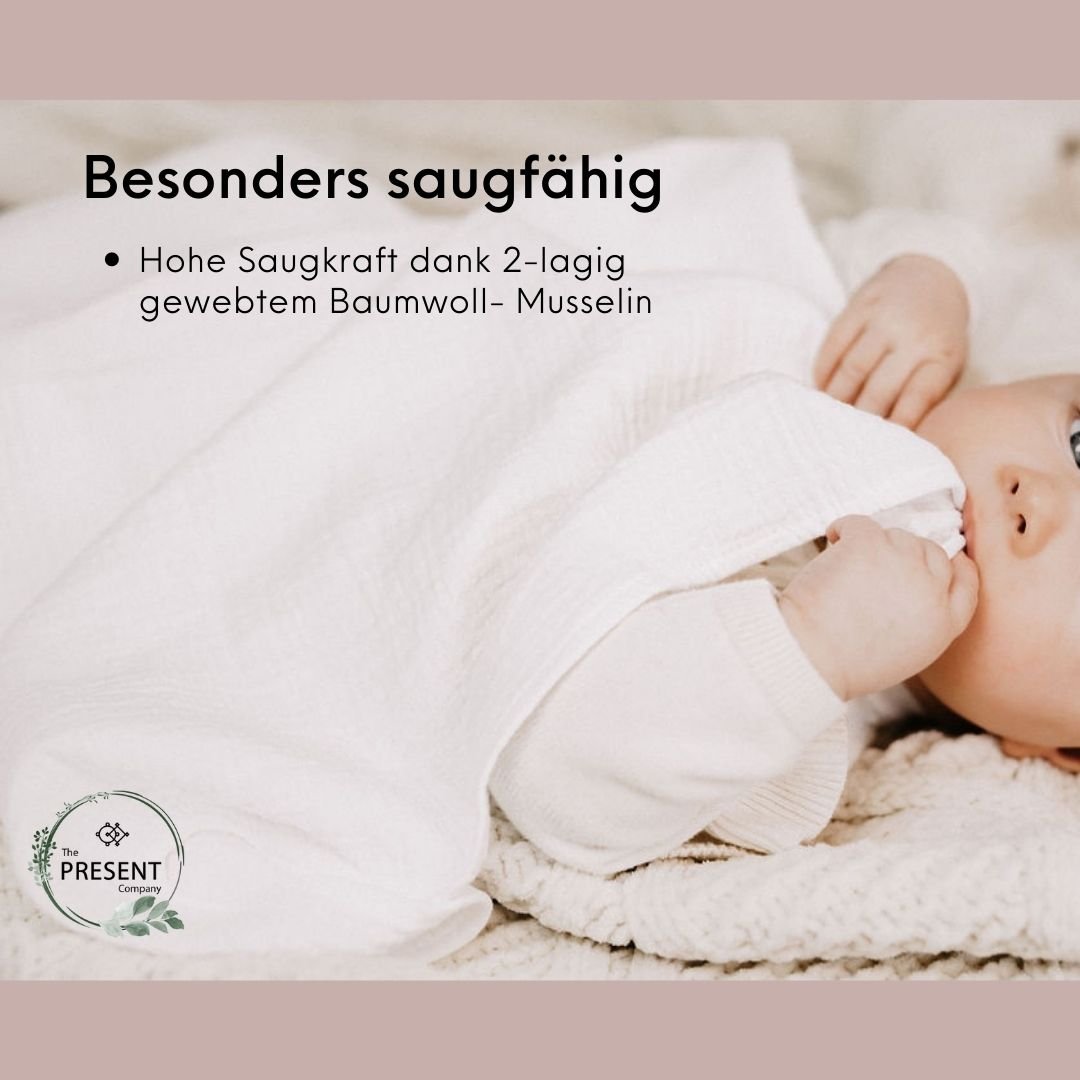 Diese 2er-Pack Musselin Tücher eignen sich hervorragend zum Stillen, Füttern, als Schmusetuch und auch als Spucktuch zum Bäuerchen machen.