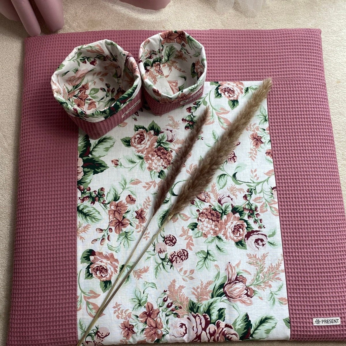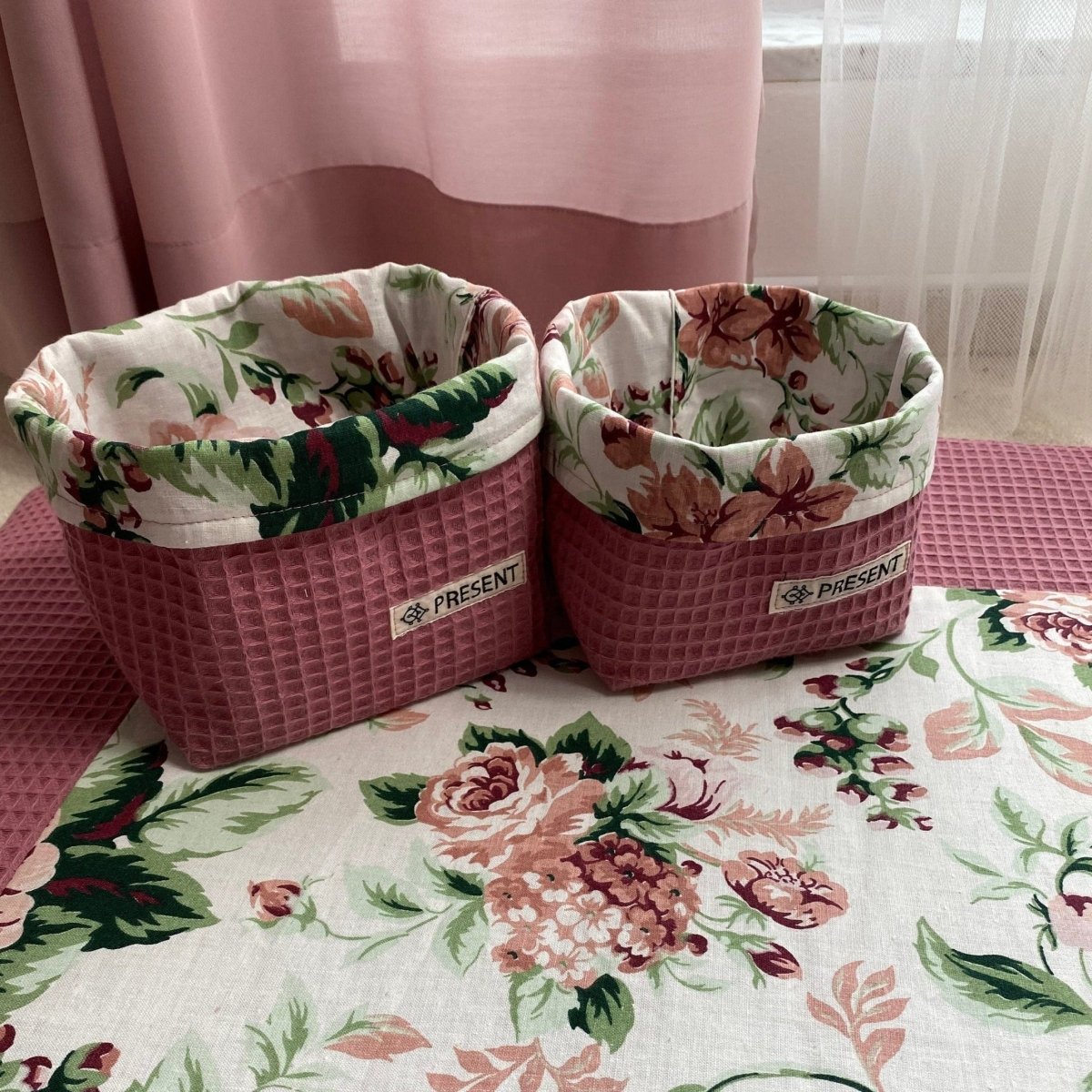 UTENSILO Körbchen Altrosa Waffelpique Blumenmotiv