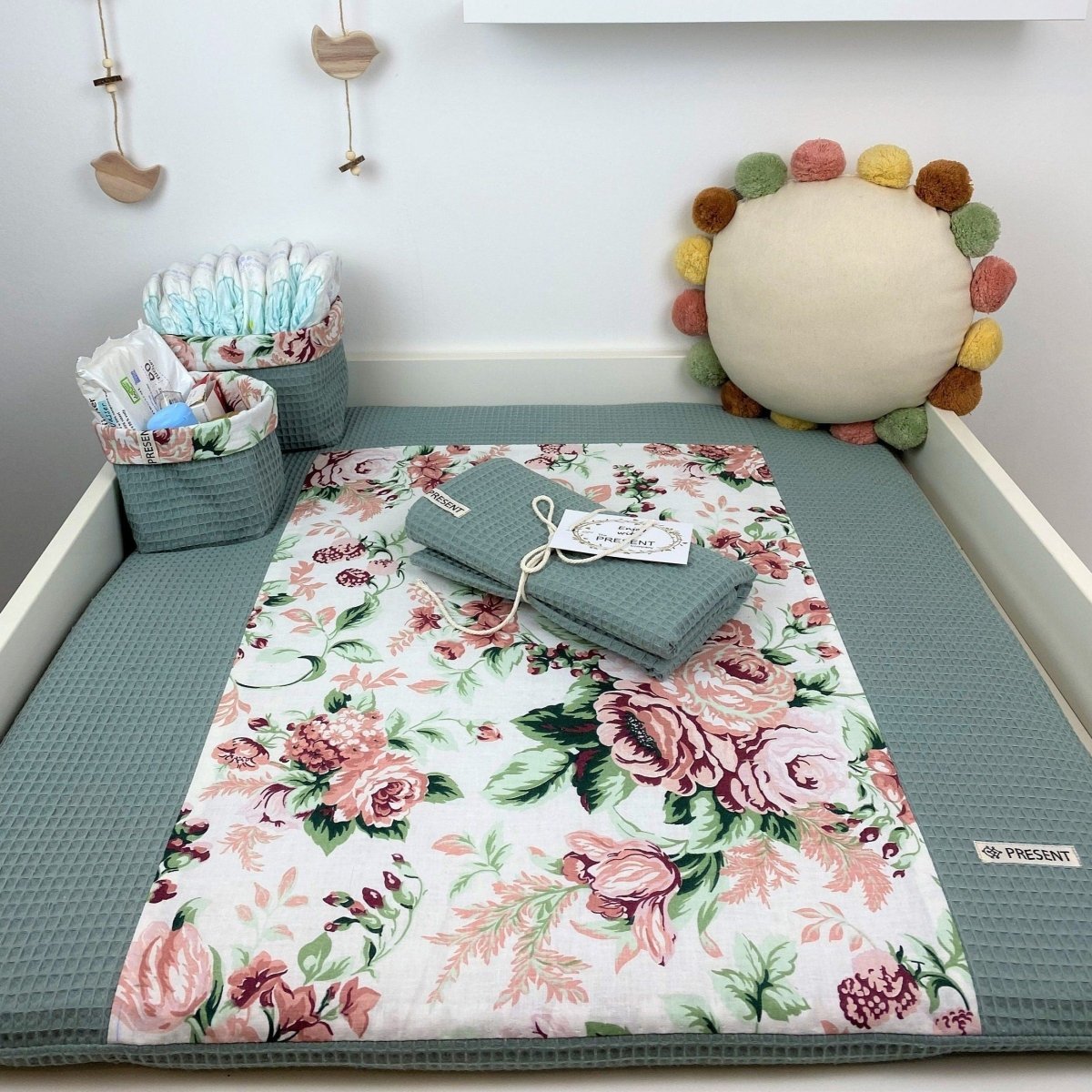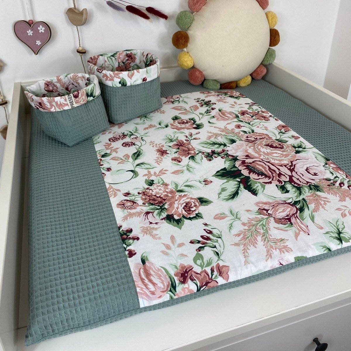 Wickelauflage Rosenblume Mint - mit abnehmbarem Bezug