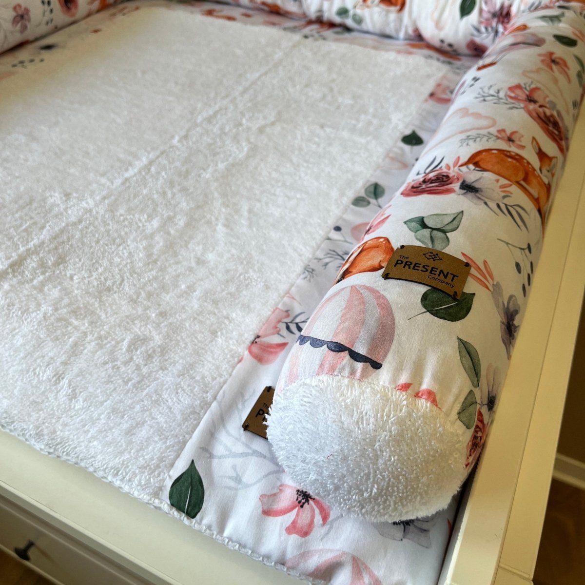 „Wir lieben unsere Wickeltischunterlage. Es ist von fantastischer Qualität und super einfach zu waschen und sauber zu halten. Bequem für unsere Tochter, um ihre Windeln anzuhaben.“ - Crystal